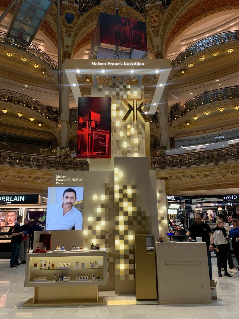 Installé sous la coupole, au cœur des Galeries Lafayette Haussmann à Paris, ce podium met en lumière l'un des parfums emblématiques de la maison, avec sa campagne BR540. Laissez-vous envoûter et plonger dans un tourbillon sensoriel en parcourant l'animation visuelle au centre du podium.